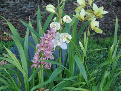 Potted orchids need a little more care. Plants your orchid in a pot filled with coarse potting mix for good air flow and free drainage such as pumice or bark. They like their roots to be tightly bound within the pot. In the summer Orchid plants will need to be sheltered from wind and rain and direct sunlight between late morning and mid afternoon. On extra hot days your cymbidiums will benefit from mistings. Expose your orchids to as much light as possible from late autumn through to winter to help the plants mature and harden. In winter its best to water early on fine sunny days so the plants can dry off before nightfall. Once your plants have finished flowering they can can be placed under a sheltered hedge until they spike again if not in a greenhouse. Finally remember to water your orchids and apply fertiliser and they will reward you well. NOTE: we only sell orchid plants from our nursery only - no courier service available.